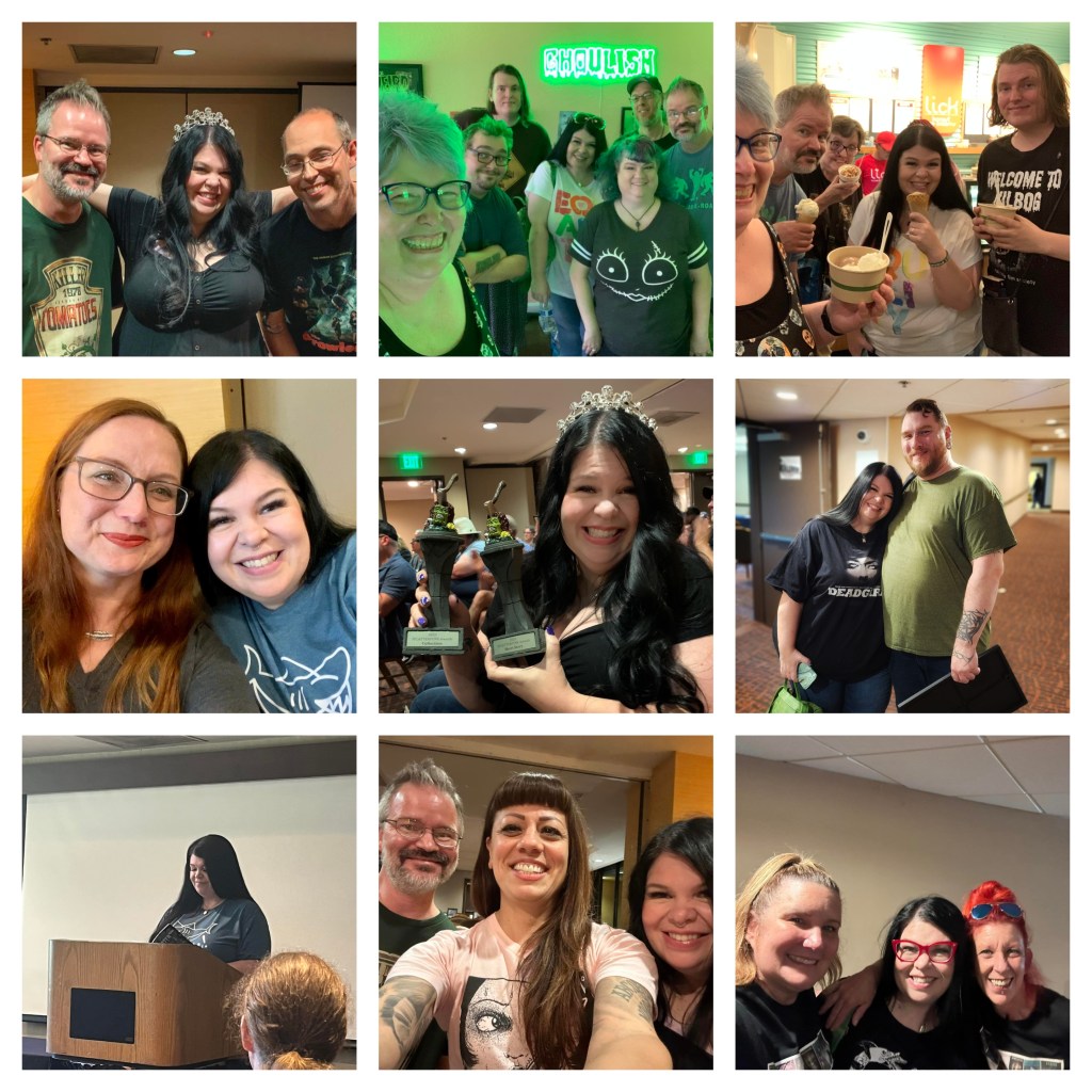 In convention news, I attended StokerCon in Pittsburgh, PA, Necon in Lowell, MA, and KillerCon in Austin, TX. In the midst of all that, I also took my daughter on a graduation trip to Chattanooga, Atlanta, and Nashville. She visited four new states and three new cities, went indoor skydiving with Jeff Strand, tried all kinds of new foods for the first time (she loves boba tea!), helped us beat a Bigfoot escape room at Netherworld, and toured the Georgia Aquarium with her goofy mom. (For those not in the know, that’s me.)